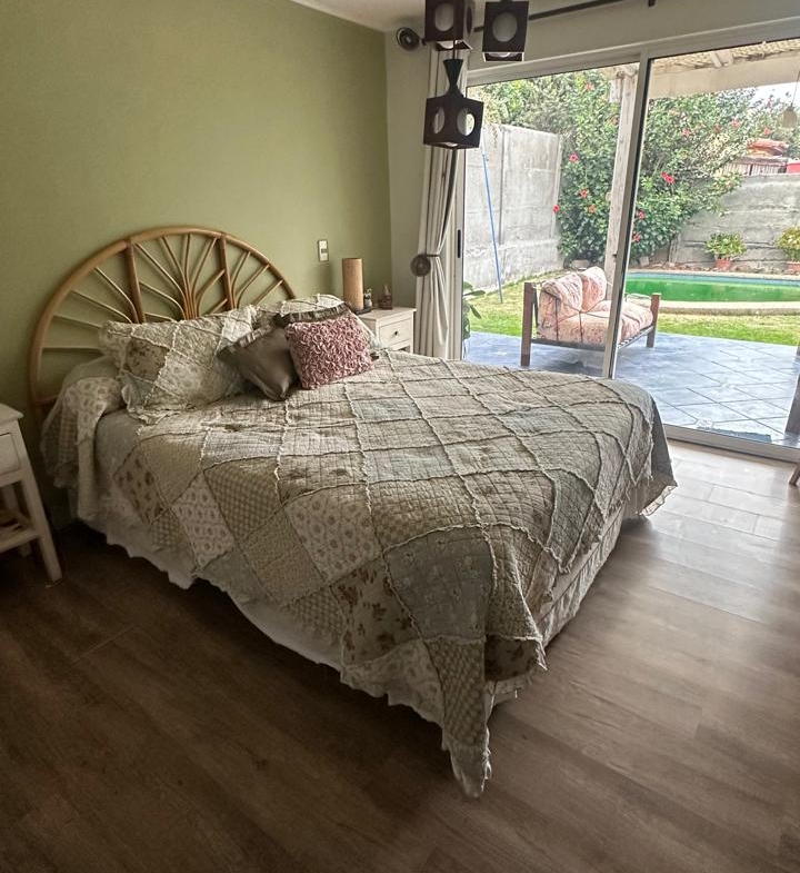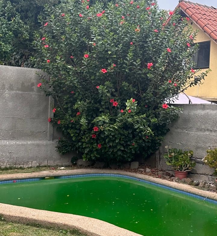 Piscina con motor integrado, amplio patio con pasto natural, árboles frutales y hermosas flores que adornar el entorno de propiedad.